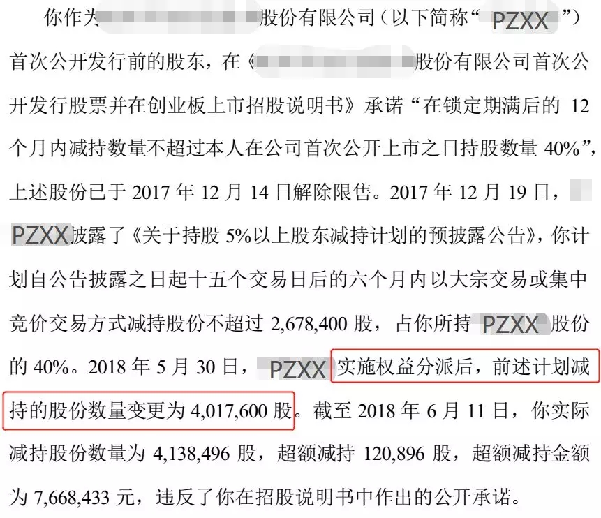 2019年1月25日,创业板上市公司PZXX持股5%以上的股东陈某被深交所出具监管函,内容如下:
