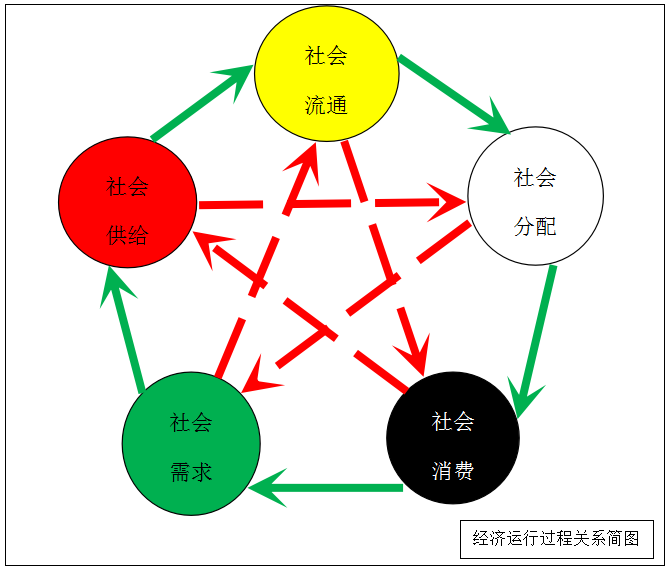 5、“社会分配”促进“社会消费”,“社会流通”制衡“社会消费”。