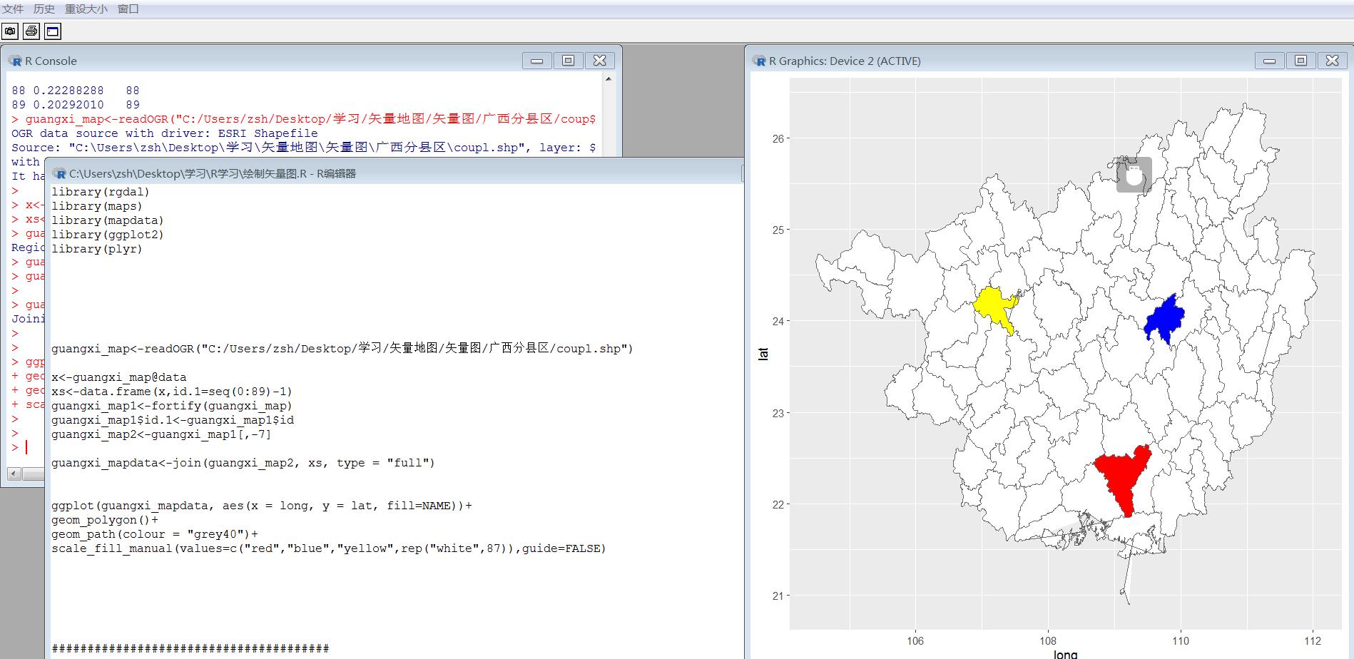 最后一行啊,你要是把颜色的顺序换一下,出的图颜色也就不一样了。至于那个对应那个颜色,你应该查看这个地图文件里面的的多边形的顺序。