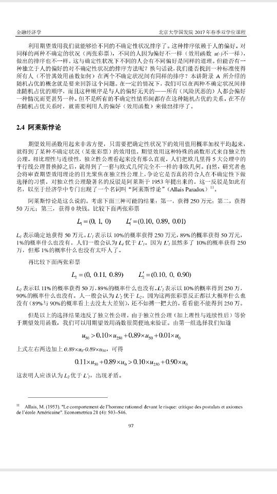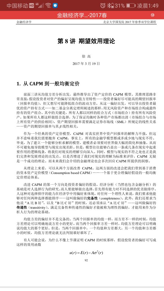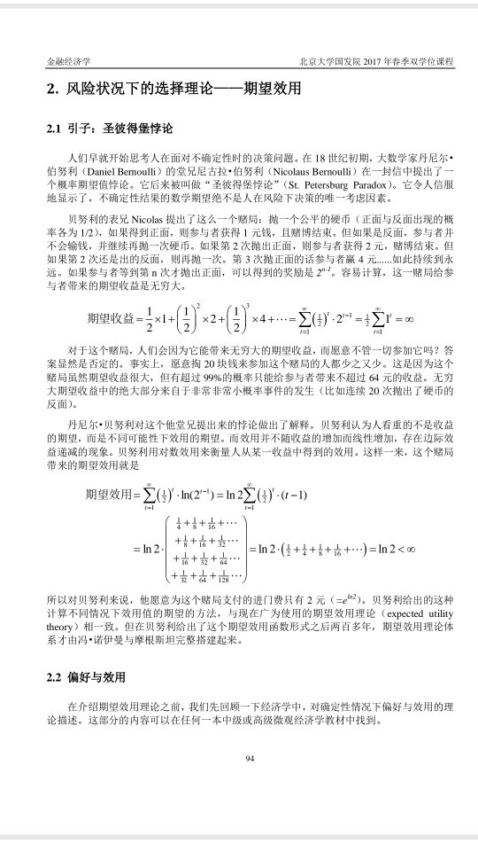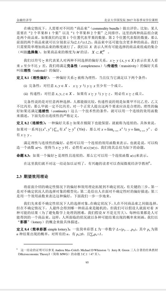 【学习笔记】重读徐高:金融经济学二十五讲 第 8 讲 期望效用理论-1