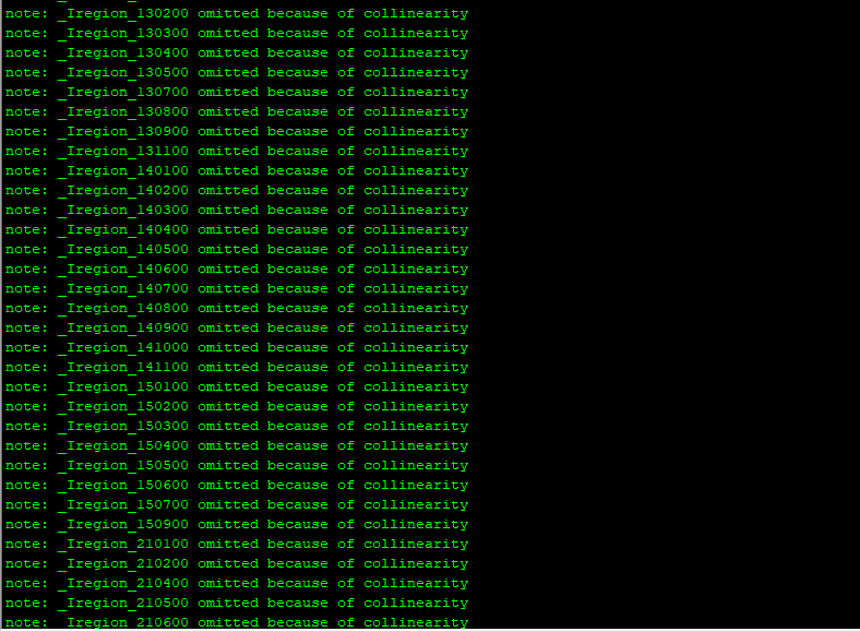 Sea.Zeng 发表于 2019-12-15 15:30 你的面板数据中,个体指的是什么?是区域吗?如果是,请把代码中的i.region去掉,其他不变。