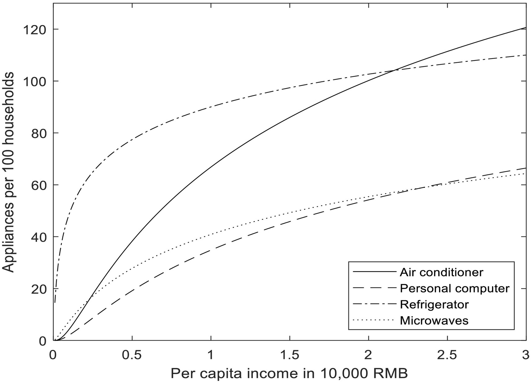 Income threshold, household appliance ownership and residential energy consumption in urban China