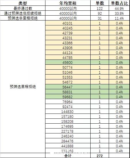 因为梳理了40公里的车里程的情况,如果我们将具体的拒绝的数据情况再梳理为以下部分: