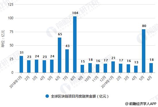 2018-2019年6月全球区块链项目月度融资金额统计情况