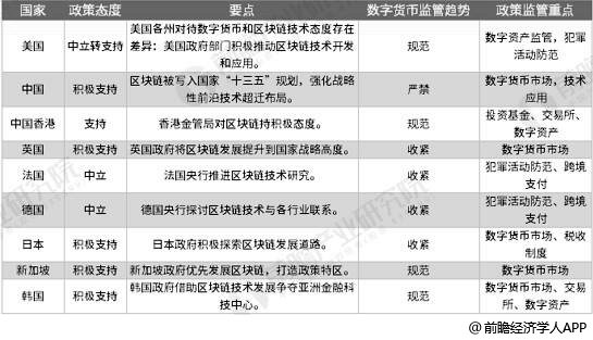 区块链诞生以来,各国政策基本持支持态度。其中,英国、美国等地区对于区块链的政策补贴较为突出,如美国国土安全部多次向区块链技术公司颁发研究合同,英国则是国家层面设立基金进行支持等。法、德等国家对区块链发展持谨慎观望的态度,仅在技术发展方面较为支持。中国方面,中国积极支持区块链行业的发展,出台了《“十三五”国家信息化规划》、《区块链信息服务管理规定》、《2018中国区块链产业白皮书》等一系列政策文件,为区块链行业的发展提供了充足的动能。不过另一方面,我国明确禁止数字货币,对于数字货币市场和技术应用一直重点监管。
