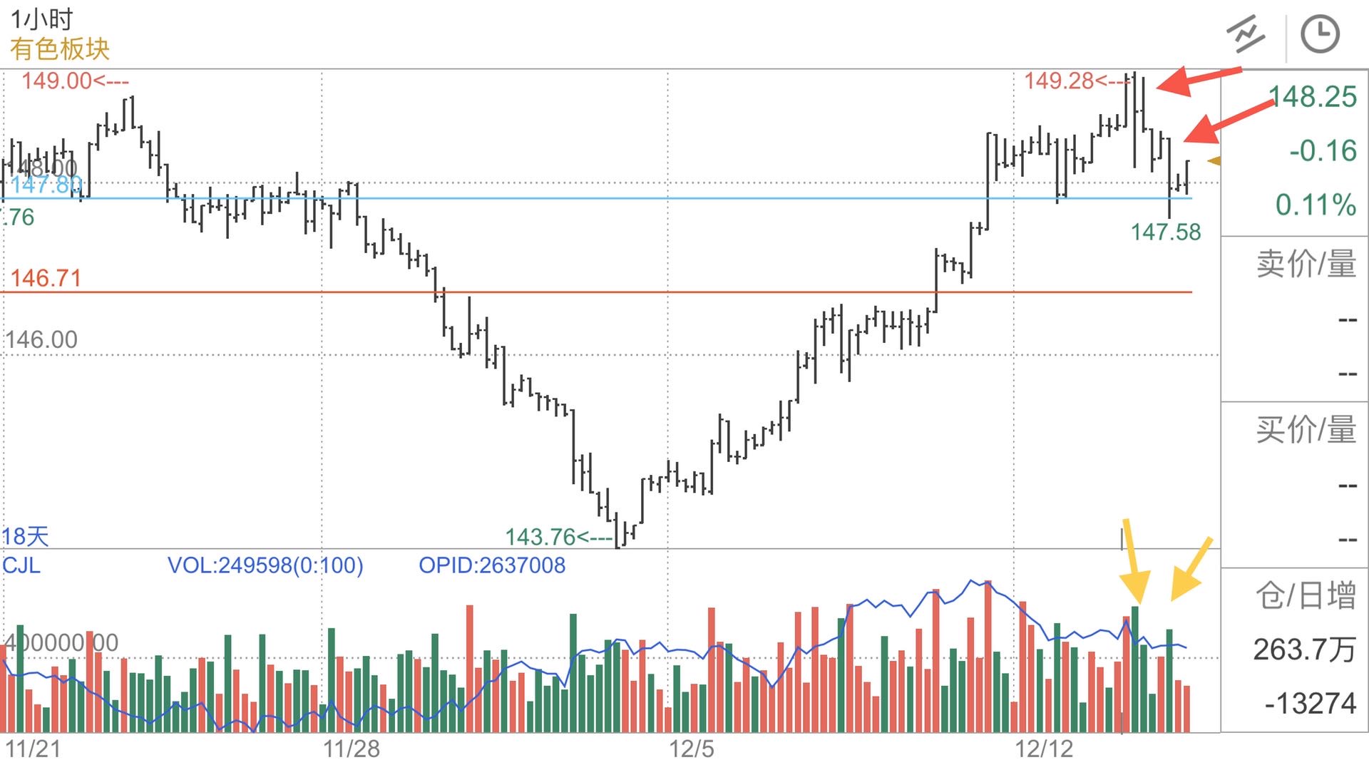 【学习笔记】有色板块 日线遭遇供应回落,还几个相关品种都来到前期供应区; ...