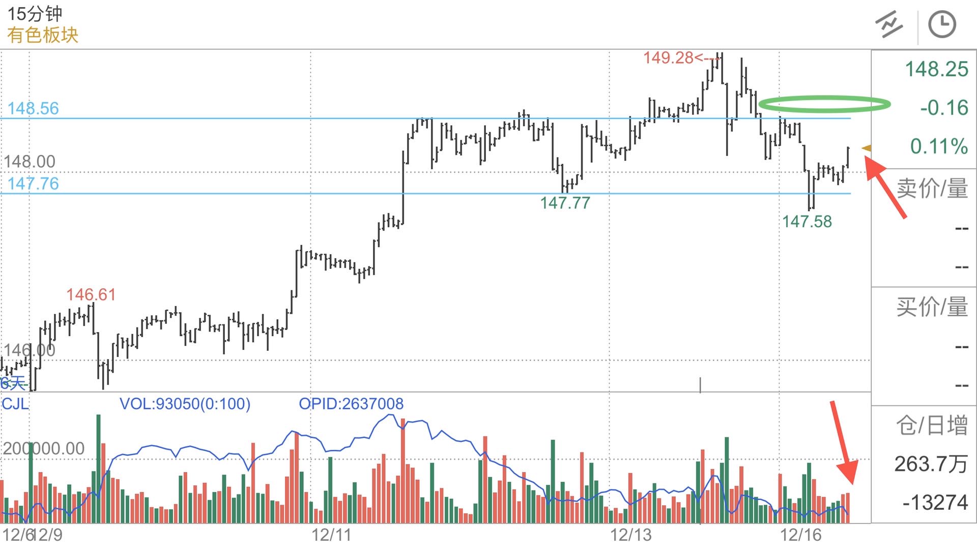 留意价格再次来到上方供应区是否出现吸收或者回落过程中是否有跟随。