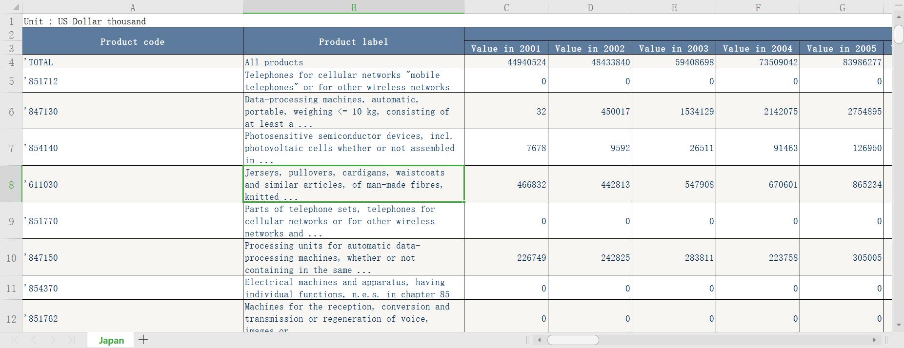 Tiikippu 发表于 2020-3-6 23:15 你好打扰了 这里面是有商品的价值量、数量和单位价值吗 还是只有一个出口额呀?