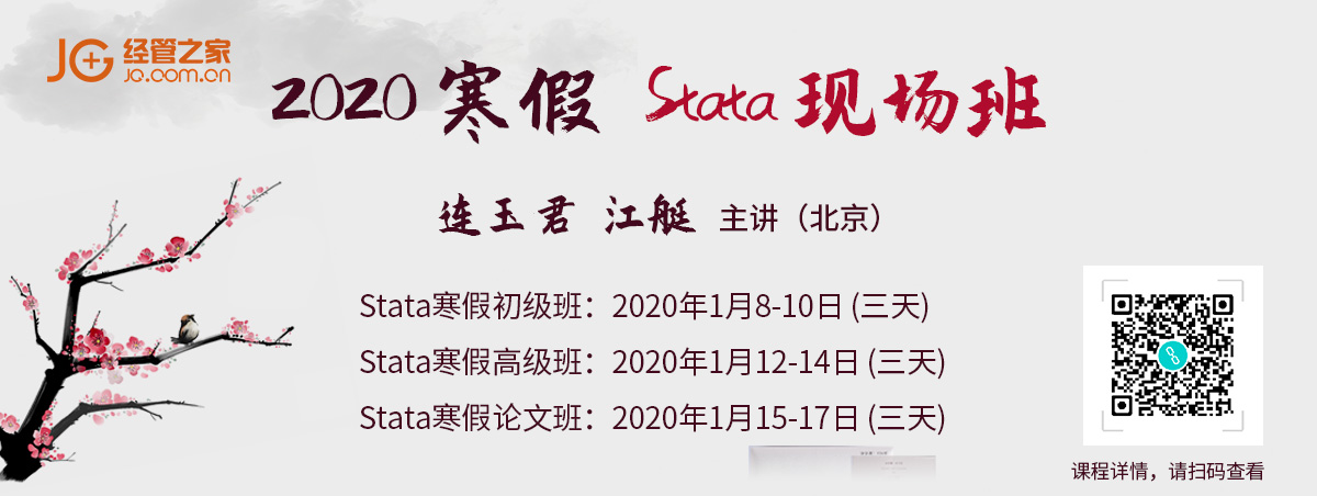 连玉君 ,中山大学岭南学院副教授,博士生导师。已在《China Economic Review》、《经济研究》、《管理世界》、《经济学(季刊)》等期刊发表论文60余篇。目前已完成 Panel VAR、Panel Threshold、Two-tier Stochastic Frontier等计量模型的Stata实现程序,并编写过几十个小程序,如winsor2, bdiff, ua等。连玉君老师团队一直积极分享Stata应用中的点点滴滴,开设了 [Stata连享会-简书],[Stata连享会-知乎] 两个专栏,并定期在微信公众号 (StataChina) 中发布精彩推文。