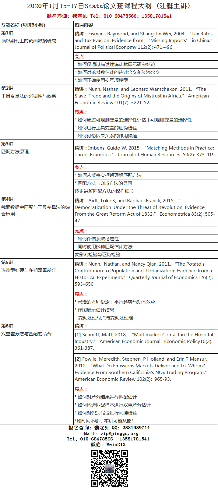 另一方面,这些论文涵盖了目前实证分析中的主流方法,更为重要的是,每一篇论文通常会综合使用多种分析方法,这对于我们理解和灵活应用初级班和高级班所学的计量方法大有裨益。