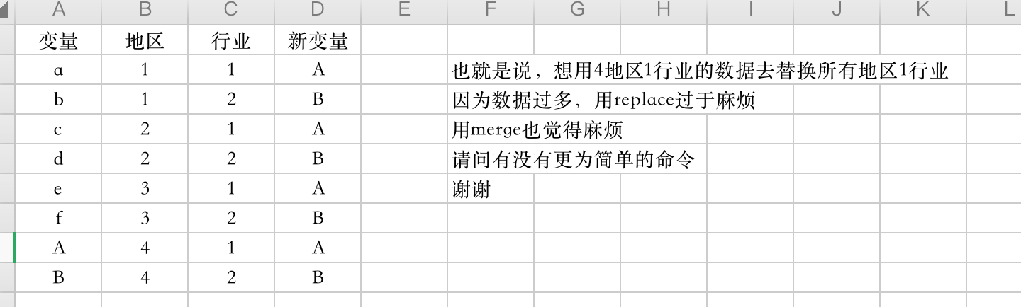 也就是说,想用4地区1行业的数据去替换所有地区1行业