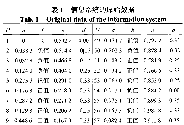 粗糙集问题:请问如何根据决策属性a,b,c来确定决策属性d的值?d的数值,有什么规律?