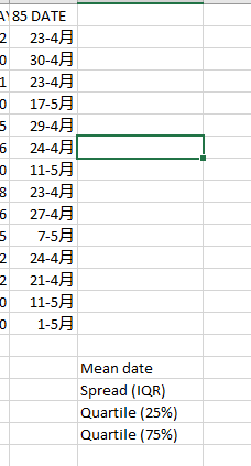 如图,我有一些日期(并不是全部)如何能求出 中间日期 和图中列出的分布呢? 日期变成什么形式导入STATA比较好呢?