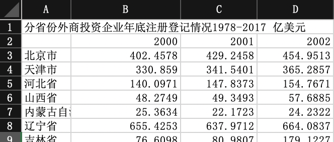 大大大大曦 发表于 2019-12-19 14:46 2000-2017 分省份外商投资企业年底注册登记情况 是自己从年鉴上下载后整理哒