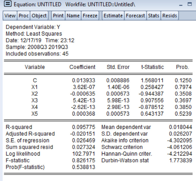 小乌龟824 发表于 2019-12-20 11:06 系数t检验都没通过,你先调整一下各变量数量级,你看你的系数有的都10的-7次方了,太小啦,总资产从原来的 ...
