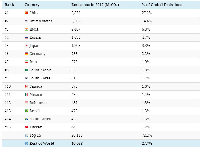 Emissions by Country[size=1.1]This week’s chart uses the most recent data from Global Carbon Atlas to demonstrate where most of the world’s CO₂ emissions come from, sorted by country.