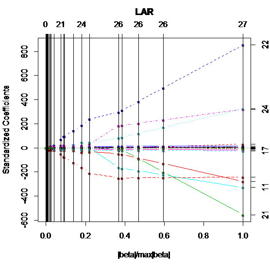 请问这个图中Standardized coefficients是什么意思,横坐标是什么意思?