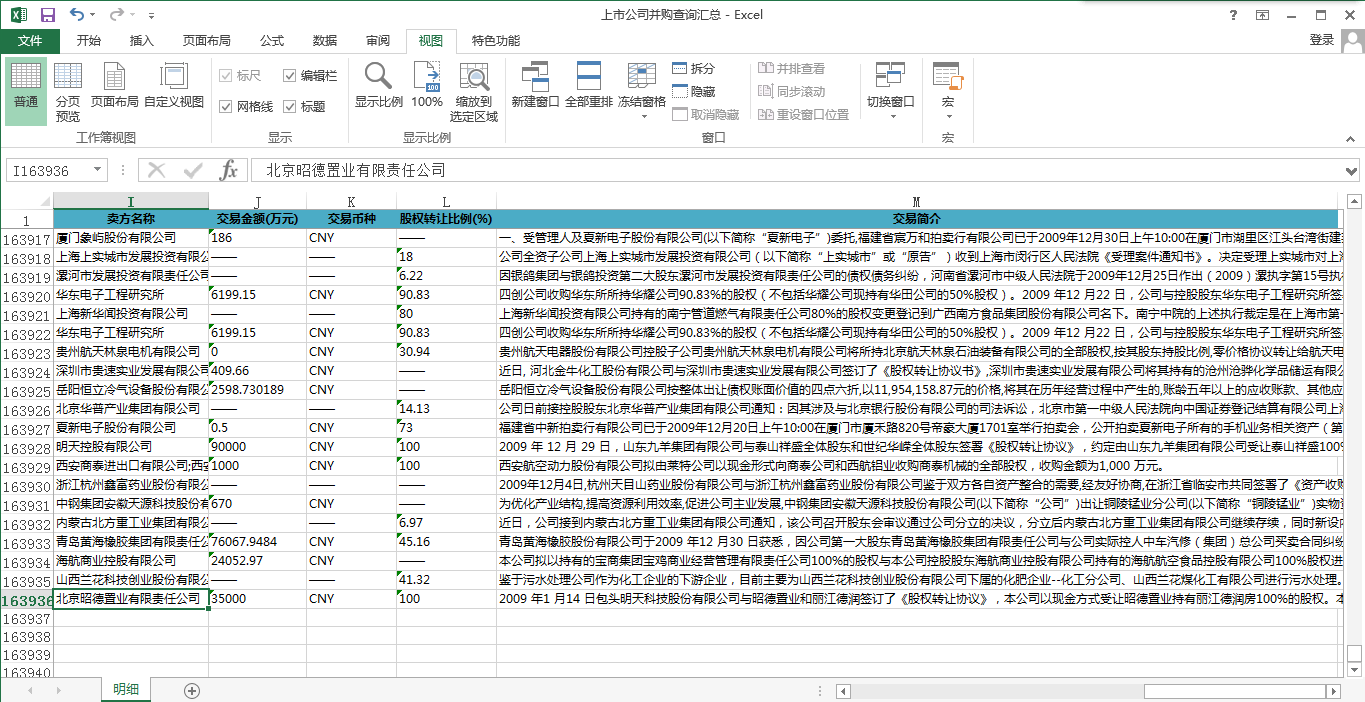 上市企业公司收购明细查询汇总
