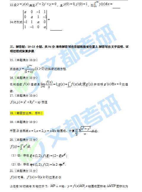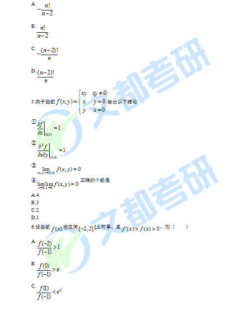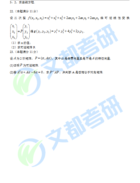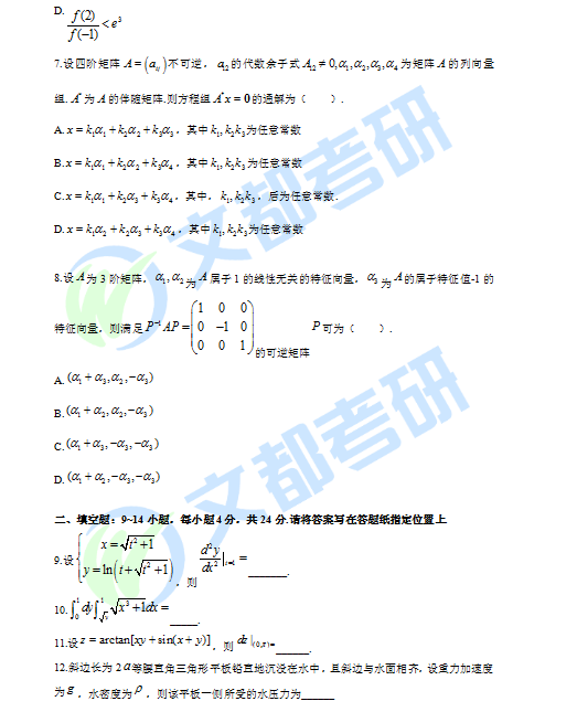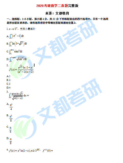 2020考研数学二真题完整版