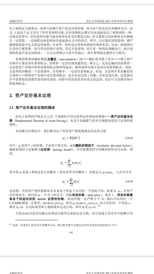 【学习笔记】重读徐高:金融经济学二十五讲 第 15 讲 无套利定价理论基础-1