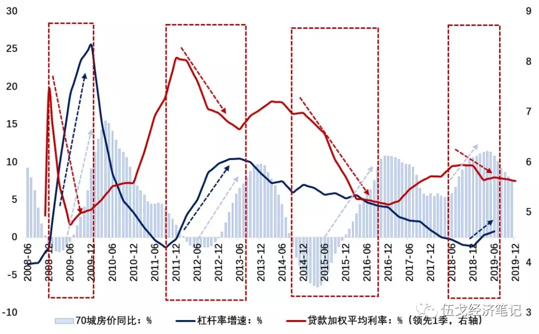 随着猪肉产能的逐步恢复及春节效应的消散,CPI有望在明年一季度冲高后回落,届时货币放松的物价掣肘或将边际减弱。但中央经济工作会议明确提出2020年要“稳杠杆”和“稳房价”。经验表明,利率的大幅降低往往会引致杠杆率与房价的攀升。利率仍受到债务杠杆及房价等的约束。