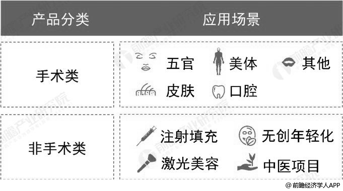 按照是否进行手术,医疗美容可分为手术类与非手术类。手术类项目旨在从根本上改变/改善眼、鼻、胸等面部及身体其他部位的外观,非手术类项目主要包括注射及激光疗法等微整形术,可分为注射填充类、无创年轻化、激光美容等。一般经卫生部门行政许可设立的医疗美容机构均可开展上述两类项目。