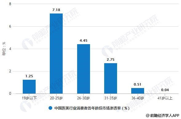 2018年中国医美行业消费者各年龄段市场渗透率统计情况