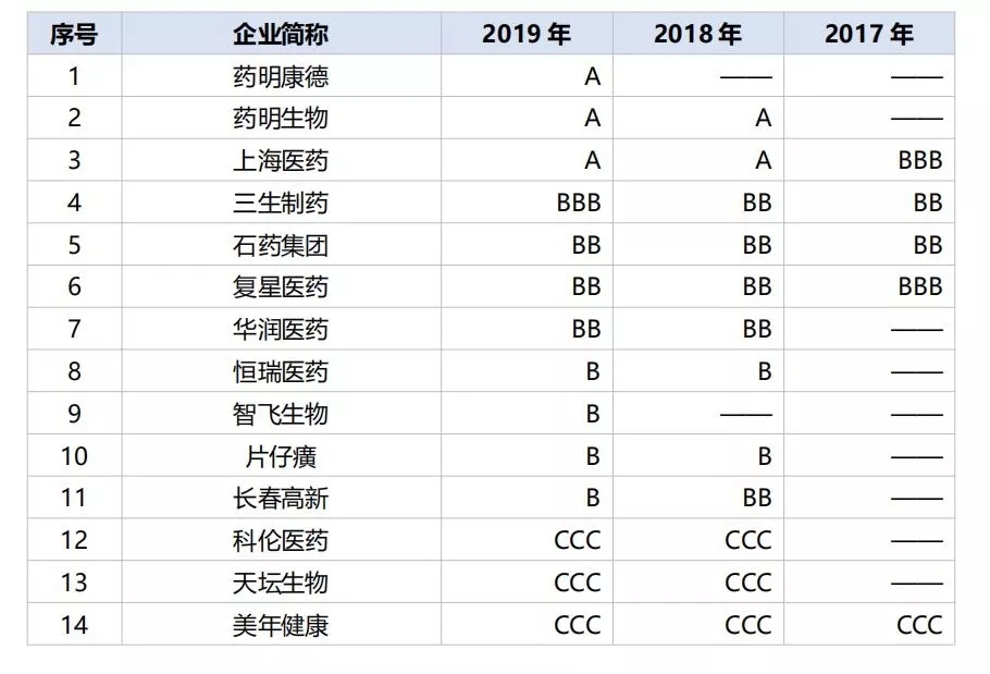 表3 中国的医药行业上市公司(部分)MSCI ESG评级结果