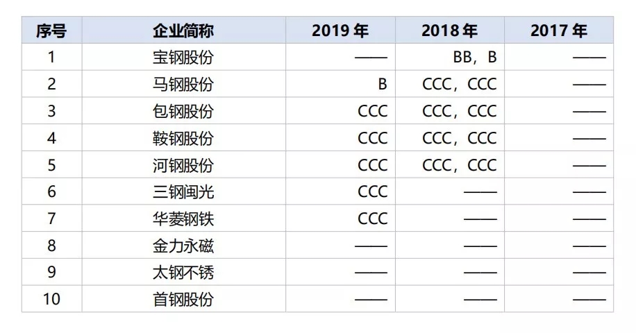 表4 中国的钢铁行业上市公司(部分)MSCI ESG评级结果