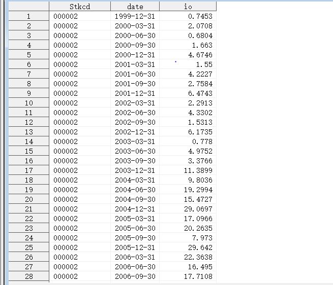 我有2000年以来3000只A股某指标的季度数据(如图),面板数据,股票代码格式$,日期格式为yymmdd10.
