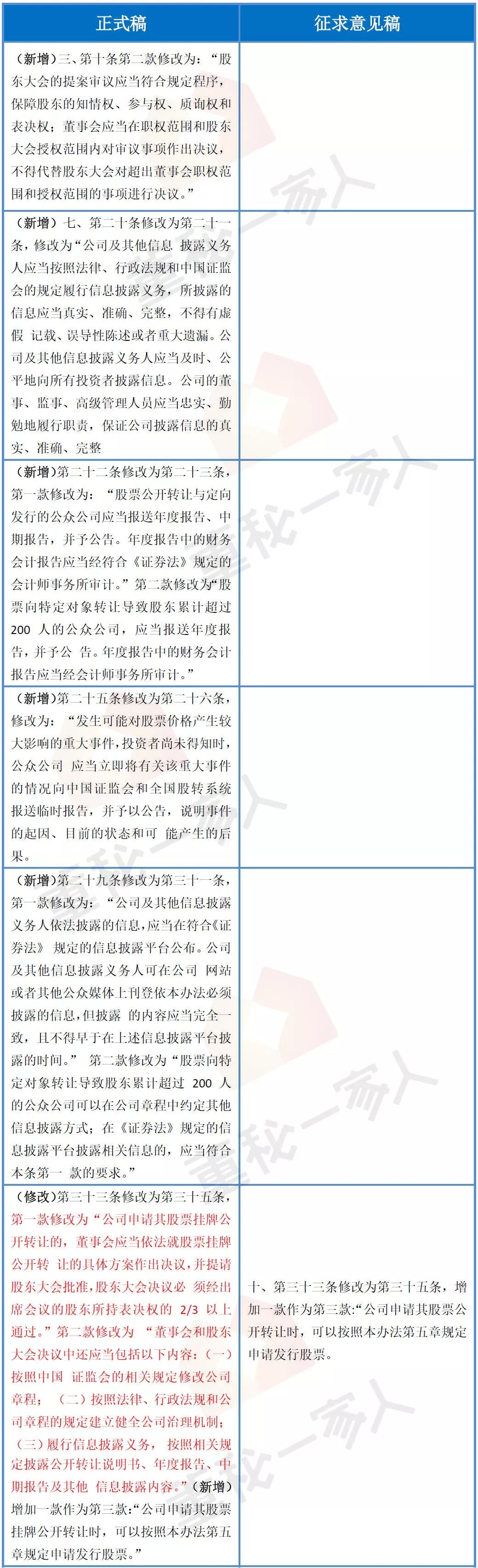 《非上市公众公司监督管理办法》正式稿与征求意见稿的对比分析