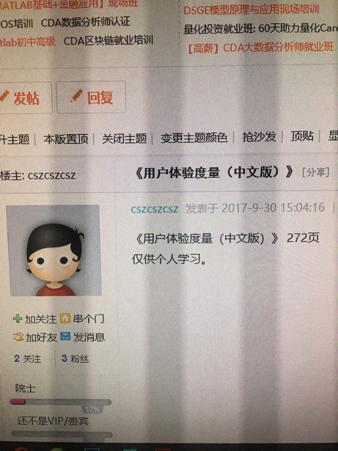 【学习笔记】求 用户体验度量(中文版) 论坛上有人发货
