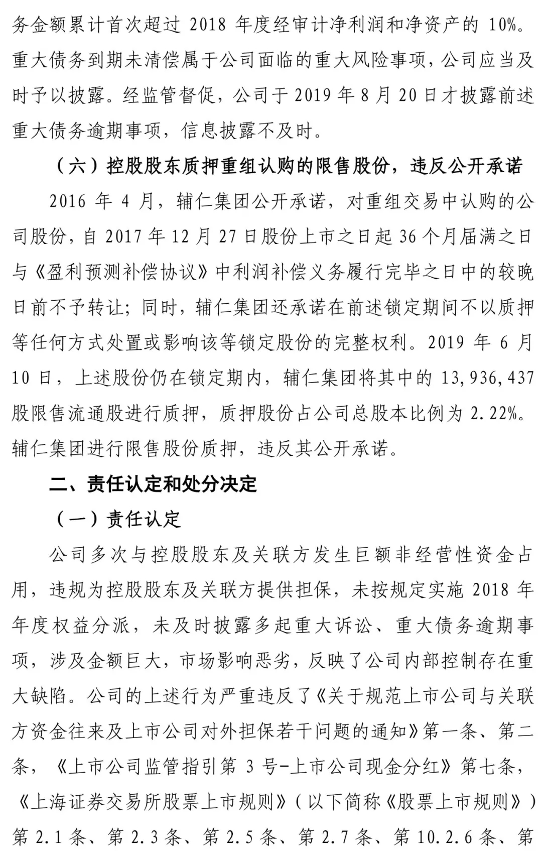 资金占用!辅仁药业收纪律处分!