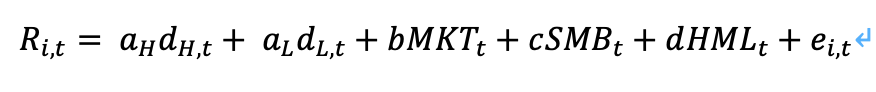 reg Long_excess MktRF SMB HML i.High i.Low, noconstant robust //分别求高/低情绪的回归。