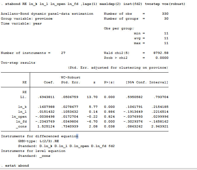 在做金融发展与实体经济影响的实证分析,动态面板模型使用差分gmm方法时,系数显著,但AR(1)、AR(2)值不符合要求,不知道是什么原因,有大神可以解答一下吗