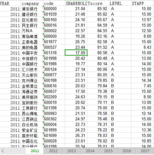 万万515 发表于 2019-12-29 15:28 润灵环球的数据是2010-2018发布的,也就是对应2009-2017年度的社会责任评分,和讯网数据本身对应的是2010-2 ...