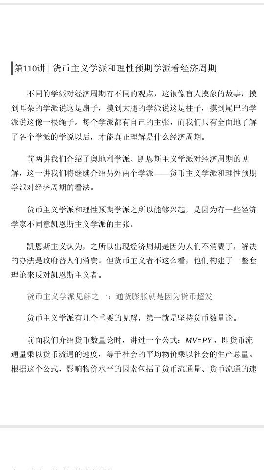 薛兆丰经济学讲义:货币主义学派和理性预期学派看经济周期