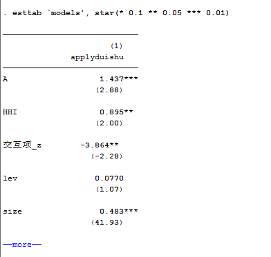 黃河泉 发表于 2019-12-31 16:55 esttab 的 default 与 上面你的 star(* 0.1 ** 0.05 *** 0.01) 是不一样所导致的。