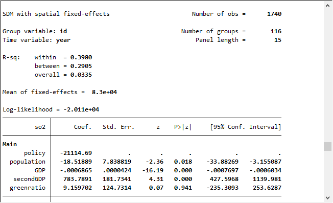 有没有同学遇到过这种问题,用空间杜宾模型估计出来的结果,虚拟变量只显示系数的?如下图: