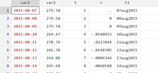 假设你的日期是2015-08-07,然后在stata的数据中属于var1这个变量,