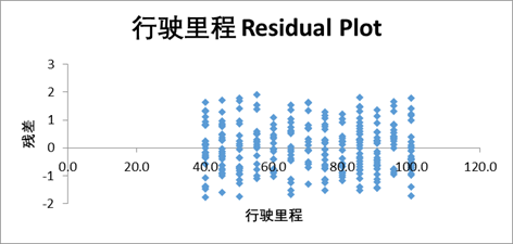 我计算了每个里程相对于的残差的方差,拿其中两个来说,比如40公里处残差方差为0.86,45公里处为0.61,这并不相同啊,但是观察行驶里程的散点图,又比较符合推断的有效性,是我理解有问题么,其实不是计算残差的方差或者是什么原因?)