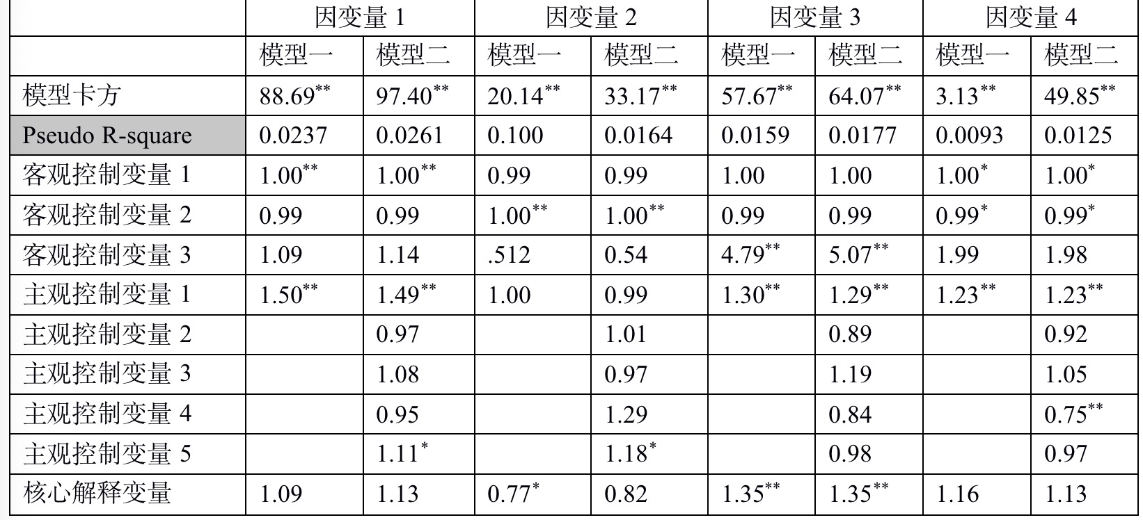 小白新手求教~~模型一和二是我先加了客观控制变量 再加了主观控制变量 怎么分析这个结果呢
