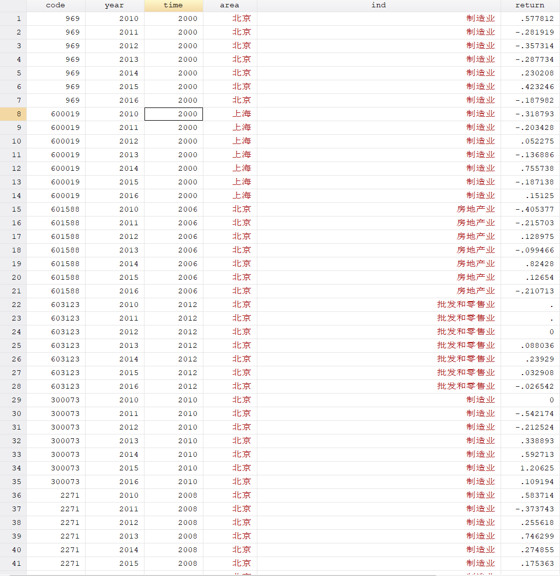 stata数据省份和行业数据为红色