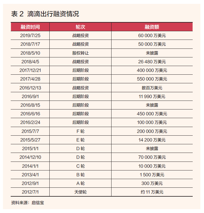 所以,在共享经济领域,我们看到企业为快速扩大市场规模,往往不惜采用大幅补贴用户的方式展开竞争。这种竞争在创业初期,依靠融资大幅补贴消费者,可以获得不错的市场规模。但是这种竞争方式,用户的转移成本很低,一旦有价格更低的平台,用户很容易就会转换到其他平台上去。例如,2015~2016年,滴滴出行和优步中国在共享出行平台的竞争,很难说双方在车辆调度的技术能力上有很大的差别,但从融资能力看,优步中国明显弱于滴滴出行(表 1、表 2)。最终,滴滴出行和优步中国的竞争演变为补贴的竞争,依靠强大的融资能力,滴滴出行最终胜出。