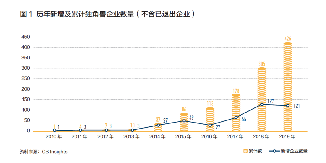 与此同时,根据CB Insights统计,从2014年开始,独角兽公司数量开始激增,到2018年独角兽公司总数已达305家,2019年达到426家公司的峰值(图 1)。根据经验数据,从初创公司到成为独角兽公司,平均时间大约在5年左右。可以推断,到2018~2019年有大量独角兽企业经营超过5年,也到了风险投资寻求退出的时间周期。