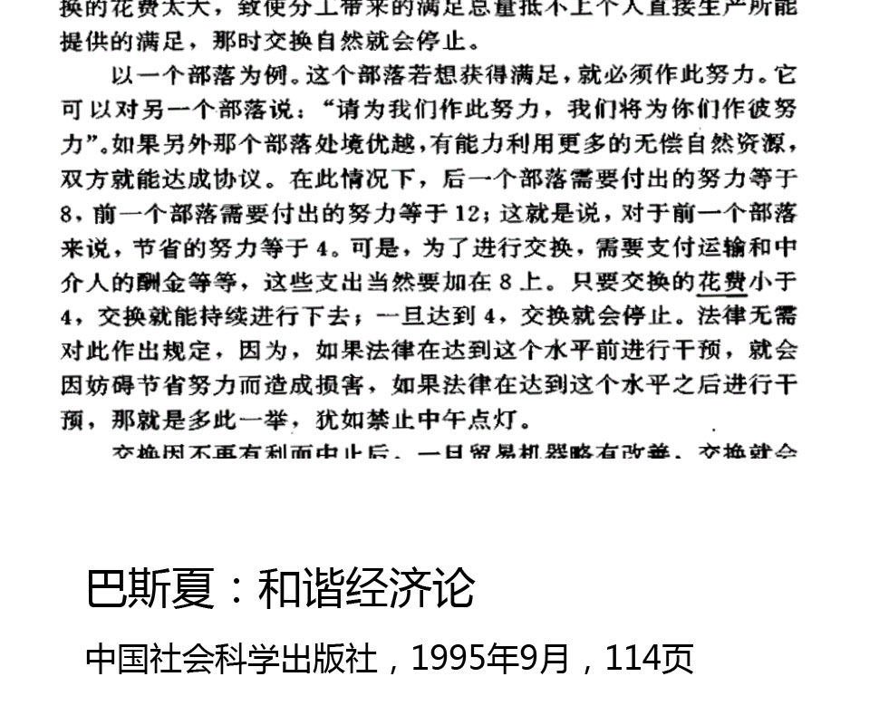 “ (4)最后吧。“在实际生活中,两者劳动时间之比趋向于无限大,例如电视机厂(电视机的专业生产者)平均数分钟可以生产一台电视机,而一个普通人(非专业生产者)生产一台电视机,可能需要数年时间。因此,根据劳动时间确定的可成交范围实际上也是趋向于无限大的。”这是你的理论出发前提吧?”
