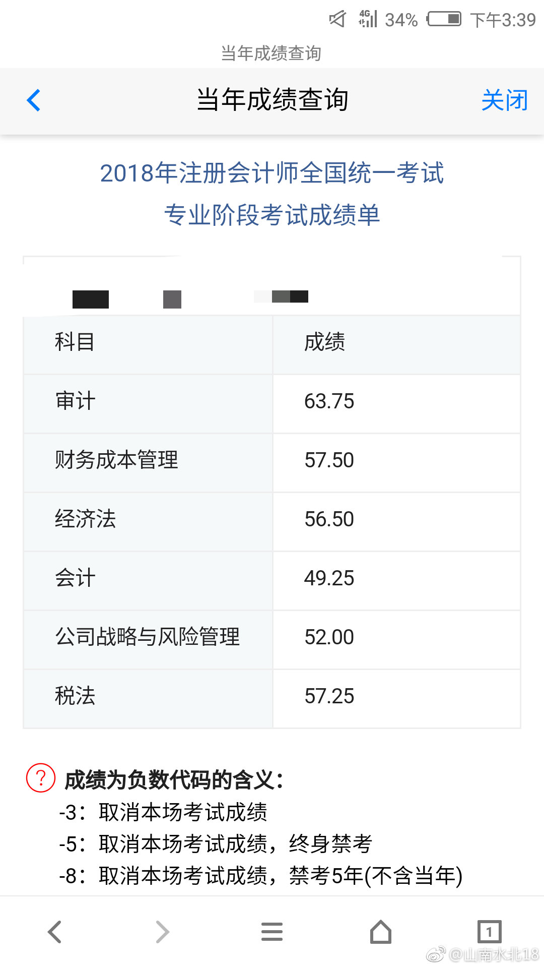 2017年毕业。现已毕业两年多。2018年在职备考CPA,报了六科CPA,很遗憾高估了自己的能力与智商,于是成绩如下图。2018年11月在职备考考研,2019年4月全职备考考研。然而最有把握的数学因为心态崩塌发挥得一言难尽,专业课计算题有超纲计算题。