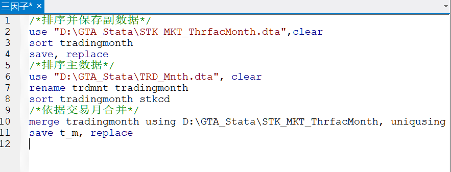 初学stata,做三因子模型,如何合并同市场的个股月度回报率和三因子模型月度数据?
