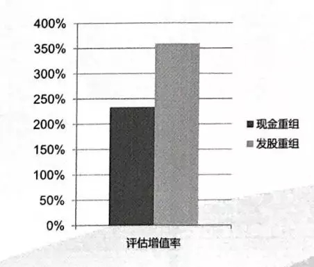 ■现金重组评估增值率中位数为233%,低于以发行股价作为对价的359%,与现金对价无需考虑上市公司市市盈率、交易对方无需承担股价波动风险有关。