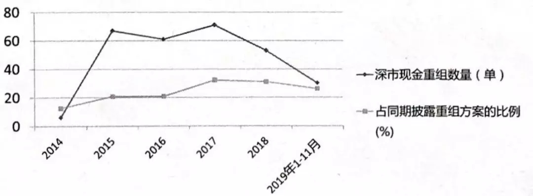 ■ 自2014年11月《重组办法》修订至2019年11月底,深市上市公司共披露现金重组288单,完成现金重组201单,实施完成率为69.79%,完成的交易金额3772.43亿元。